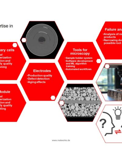 Mit unserem umfassenden Leistungsspektrum unterstützen wir Sie dabei, die Qualität und Leistungsfähigkeit Ihrer Batterien sicherzustellen. Sie profitieren von modernster Hochleistungsmikroskopie, unserer langjährigen Expertise in der Präparation und Handhabung von Lithium-Ionen-Batterien sowie von selbst entwickelten, auf maschinellem Lernen basierenden Analyseverfahren. Für empfindliche Proben garantieren wir einen sauerstofffreien Probentransfer, um höchste Präzision und Sicherheit zu gewährleisten. Unsere Untersuchungen begleiten Sie zuverlässig bei der Entwicklung Ihrer Produkte und Prozesse, der Auswahl geeigneter Lieferanten, der Kontrolle des Wareneingangs sowie der gründlichen Ursachenermittlung bei Schadensfällen. Vertrauen Sie auf unsere Expertise für präzise Analysen und fundierte Ergebnisse.