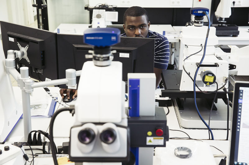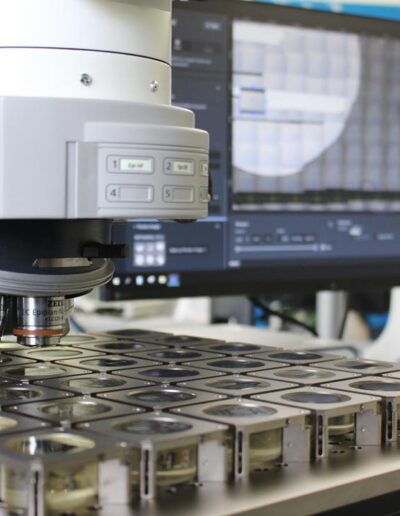 Höchste Effizienz in der quantitativen Mikroskopie ist eines unserer Kernthemen. Gemeinsam mit unseren Partnern treiben wir dies an konkreten Anwendungen voran. Individuelle Lösungen können hierbei den Automatisierungsgrad enorm steigern. Dazu bieten wir Probenhaltersysteme für Schliffproben oder kundenspezifische Proben an. Automatisierte Serienuntersuchungen bei zugleich maximaler Flexibilität sind die besondere Herausforderung. Machine Learning? Wird bei uns gezielt angewandt!