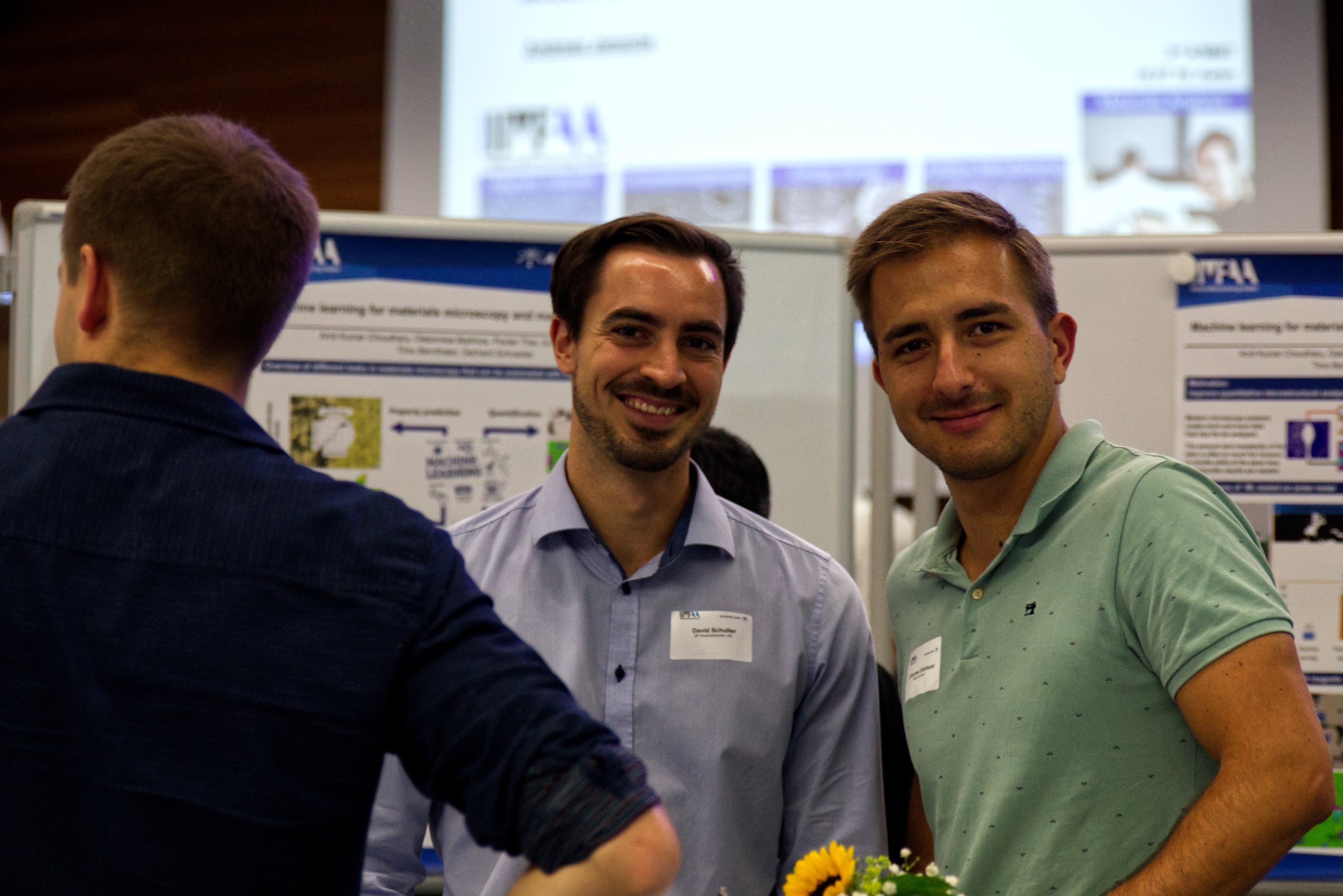 Der Nachmittag wurde von Doktoranden des IMFAA und der Machine Learning Group gestaltet. In ihren Beiträgen gingen die Nachwuchswissenschaftler tiefer auf Anwendungsfälle von Machine Learning in der Mikroskopie und der zerstörungsfreien Röntgenprüfung ein und zeigten dabei, dass Machine Learning den Menschen oft einen Schritt voraus ist. Den Anfang machte Andreas Jansche, der sich mit den Herausforderungen der Digitalisierung in der Mikroskopie beschäftigte. Er zeigte unter anderem, wie große hochaufgelöste mikroskopische Bilder einer Lithium-Ionen Zelle für ein Automobil effizient ausgewertet und die Daten mittels Machine Learning verwaltet werden können. Die Vorteile von Machine Learning in puncto Robustheit und Reproduzierbarkeit sowie die Möglichkeiten zur Analyse komplexer Werkstoffe, waren Thema des Vortrags von Amit Kumar Choudhary. Er zeigte Lösungen zur quantitativen Analyse der für die magnetischen Eigenschaften wichtigen Korn- und Domänenstruktur in Sintermagneten für elektrische Maschinen. Auch gelang es ihm bei der Messung von Verunreinigungen in Stählen die eigenschaftsrelevanten Einschlüsse deutlich besser zu erfassen.. Daniel Sauter präsentierte, wie mittels tiefer neuronaler Netze – dem sogenannten Deep Learning – sicherheitsrelevante Fehler in Röntgenbildern von Turbinenschaufeln in Flugzeugtriebwerken vom Rechner erfasst und zugeordnet werden können – und dass dieser den Menschen im „Entdecken“ der Fehler überholt. Den Abschluss bildete Olatomiwa „Tommy“ Badmos. Er stellte in seinem Vortrag zur Detektion von Auffälligkeiten in Materialgefügen dar, wie Algorithmen, die Google zur Objekt- oder Gesichtserkennung verwendet, in der Mikroskopie funktionieren. So zeigte er, wie in einem Mikroskopbild einer Lithium-Ionen-Batterie Deep Learning „quasi live“ und eigenständig kritische Fremdeinschlüsse oder Risse entdeckt und zuordnet.